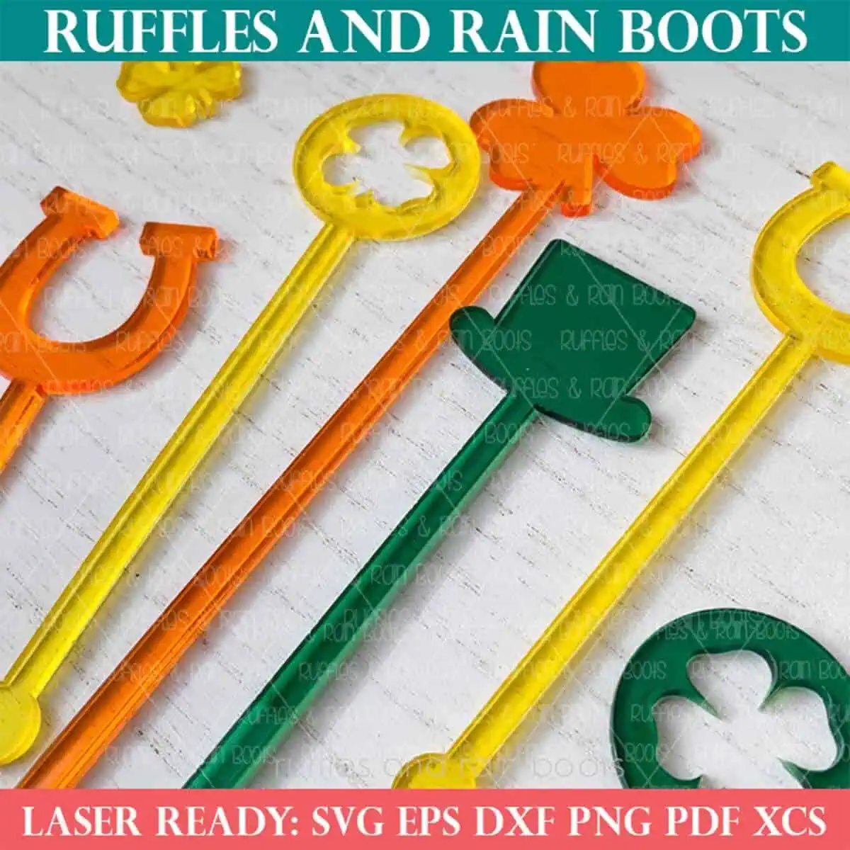 This St Patrick’s Day laser cut bundle features drink stirrers two sizes of four designs. Use one or both sizes for a St Patrick’s Day party. These are ready for personal use, to make gifts, or to sell physical goods with the included commercial license.